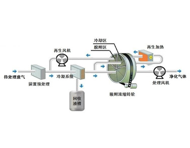 濃度高、成分相對(duì)單一的有機(jī)溶劑廢氣,回收利用的價(jià)值相對(duì)較高。在性?xún)r(jià)比合理的前提下,采用適當(dāng)工藝設(shè)備回收大部分溶劑,剩下的含有少量VOC的廢氣,可以進(jìn)行吸附濃縮-脫附進(jìn)入回收循環(huán)系統(tǒng),或者進(jìn)行吸附-催化燃燒,以實(shí)現(xiàn)達(dá)標(biāo)排放。
